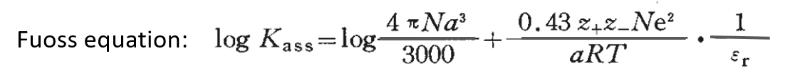 Assuming that the constant of the association reaction between the solvated cation and solvated anion is Kass, logKass can be roughly expressed by the following Fuoss approximation equation (3).