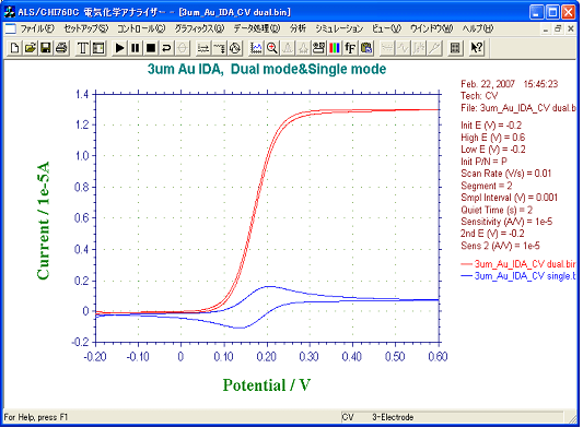 Figure 5 shows a result of LSV Dual mode measurement. Its collection efficiency was proved to be 96.4% by our calculation from limiting current of Collector electrodes and Generator electrodes.